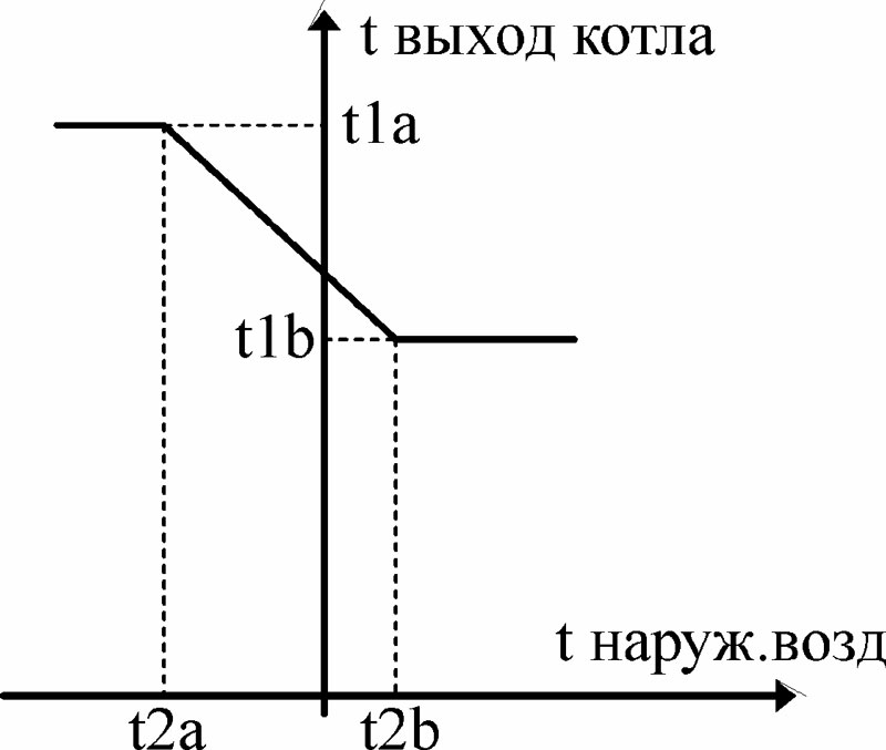 Погодозависимое управление уставками котла реализуется по следующему графику: