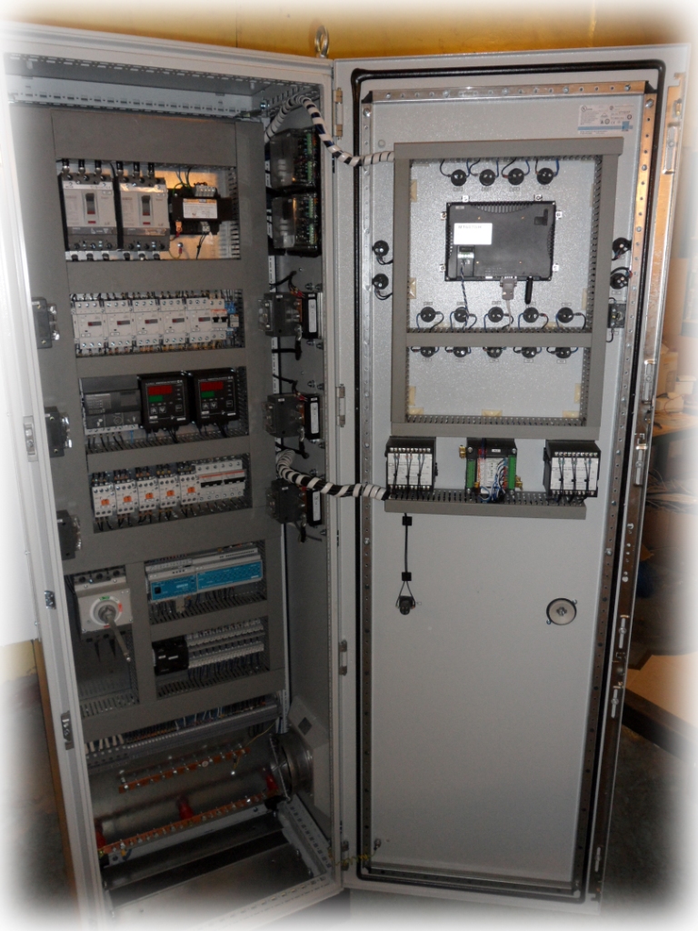 Силовая часть реализована на элементной базе компании ABB. Отображение технологического процесса с помощью сенсорной панели оператора компании Weintek. Реализация программной части выполнена в среде программирования CoDeSys. Система разработана по принципу создания единого управляющего щита напольного исполнения (см. фото 1).