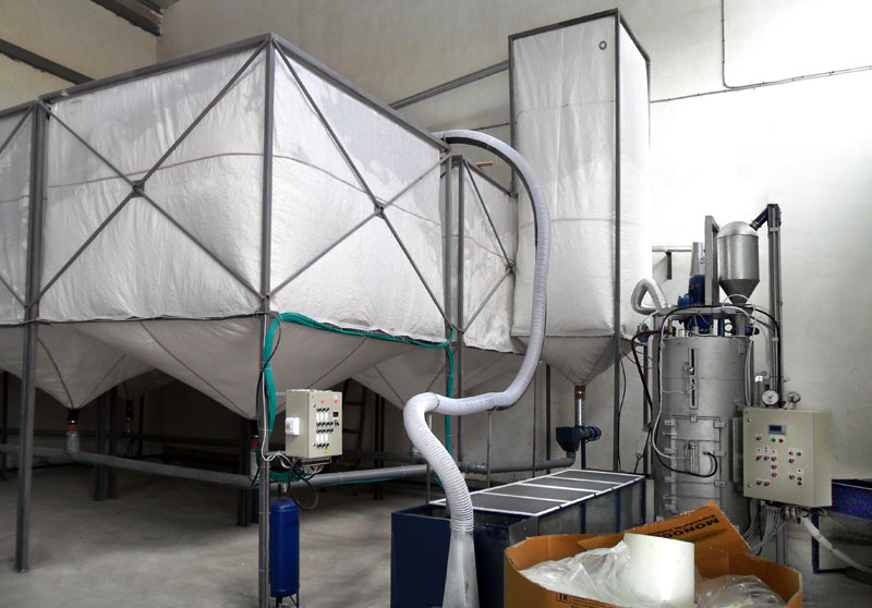 Кроме того, оператор был занят нелегким физическим трудом: при каждой загрузке рабочий взвешивал и засыпал в предвспениватель сырьё, масса которого порой могла достигать до 50 кг – в зависимости от желаемой марки пенопласта. Немаловажно будет отметить и тот факт, что в производственной линии разные единицы оборудования имеют разную производительность. И ранее комплекс подготовки сырья отставал от формовочного узла, снижая эффективность работы и производительность всего цеха в целом. Автоматизированный предвспенивательКомпания «ВяткаСтройДеталь» в целях увеличения производительности и уменьшения человеческого риска ошибки выпустила полностью автоматический вспениватель гранул пенополистирола. В результате автоматизации оператору необходимо нажать только кнопку «Пуск» и задать через панель оператора ИП320 необходимые параметры технологического процесса. Контроллер ПЛК150 в связке с модулем дискретного ввода/вывода МДВВ полностью осуществляет управление и контроль процесса вспенивания. Согласно запрограммированному циклу сначала осуществляется процесс прогревания камеры предвспенивателя до заданной через панель оператора температуры. Одновременно по шнековому транспортеру ведется загрузка сырья в весовой терминал. В весовом терминале установлен тензодатчик с преобразователем сигнала МВ110-224.1ТД. С преобразователя сигнала тензодатчика на вход контроллера поступает сигнал 4-20мА. Контроллер ПЛК150 в зависимости от сигнала с тензодатчика управляет скоростью вращения шнекового транспортера через частотный преобразователь ПЧВ101-К75-А. Данный способ позволяет достичь максимально точного веса сырья для предвспенивания. Так, при 50 килограммах сырья погрешность составила всего 9 граммов. Как только в весовом терминале окажется нужное количество сырья, и камера будет прогрета до заданной температуры, осуществляется процесс загрузки сырья в камеру предвспенивателя и начинается процесс вспенивания. Сырье в процессе вспенивания должно достичь объем 1 м³. За процессом вспенивания следят оптические датчики. Как только сырье достигло нужного объема, внизу предвспенивателя открывается окно выгрузки вспененного полистирола. Далее сырье попадает в сушилку и бункеры выдержки. Далее предвспениватель начинает новый цикл с дозировки сырья. Количество циклов предвспенивателя также устанавливается через панель оператора ИП320. Результат автоматизацииДанная автоматизация повысила производительность предвспенивателя с 80 до 140 м³ в смену и позволило свести к нулю количество брака. Демонстрацию работы полностью автоматизированного цеха для производства пенопласта, смонтированного в Болгарии, можно увидеть на сайте http://www.penolider.ru/ в разделе «Видео».