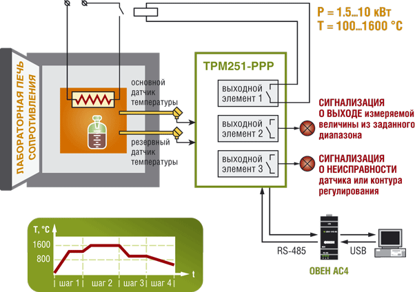 ТРМ251 позволяет на каждом шаге задать необходимую скорость роста (или снижения) температуры. В результате нагрев и охлаждение происходят плавно, без скачков, что позволяет избежать термических напряжений, которые могут привести к разрушению керамики.